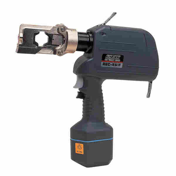 REC-551F充电式压接机 压接范围:10-185mm²端子 特点:头部可180。旋转适用各种工作角度。轻巧便携,令作业轻松自如。 出 力5.1ton 动 力DC14.4V 重 量3.3kg 标准配置25、35、50、70、95、120、150、185 mm²压模各1对,充电池、充电器、轻便手提箱各1个