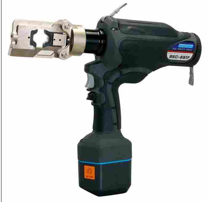 REC-651F 充电式压接钳 规格 滑块行程:16mm 动 力:14.4VDC 储 油 量:78CC 出力:52KN 尺 寸:255 (L) X 355 (H) X 79 (W) mm